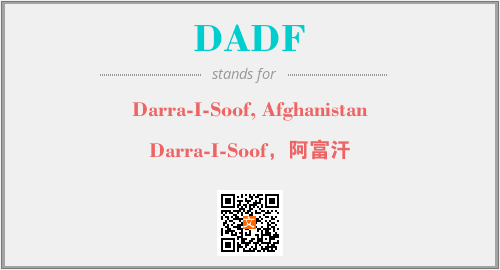 英文缩略词“DADF”经常作为“Darra-I-Soof, Afghanistan”的英文缩写来使用,中文表示:“Darra-I-Soof,阿富汗”。本文将详细介绍英文缩写词DADF所代表英文单词,其对应的中文拼音、详细解释以及在英语中的流行度。此外,还有关于缩略词DADF的分类、应用领域及相关应用示例等。