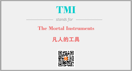 英文缩略词“TMI”经常作为“The Mortal Instruments”的英文缩写来使用,中文表示:“凡人的工具”。本文将详细介绍英文缩写词TMI所代表英文单词,其对应的中文拼音、详细解释以及在英语中的流行度。此外,还有关于缩略词TMI的分类、应用领域及相关应用示例等。