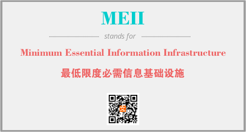 英文缩略词“MEII”经常作为“Minimum Essential Information Infrastructure”的英文缩写来使用,中文表示:“最低限度必需信息基础设施”。本文将详细介绍英文缩写词MEII所代表英文单词,其对应的中文拼音、详细解释以及在英语中的流行度。此外,还有关于缩略词MEII的分类、应用领域及相关应用示例等。