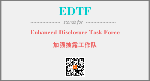 上述内容是“Enhanced Disclosure Task Force”作为“EDTF”的缩写,解释为“加强披露工作队”时的信息,以及英文缩略词EDTF所代表的英文单词,其对应的中文拼音、详细解释以及在英文中的流行度和相关分类、应用领域及应用示例等。