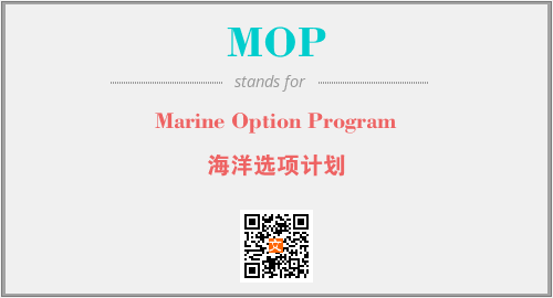 上述内容是“Marine Option Program”作为“MOP”的缩写,解释为“海洋选项计划”时的信息,以及英文缩略词MOP所代表的英文单词,其对应的中文拼音、详细解释以及在英文中的流行度和相关分类、应用领域及应用示例等。