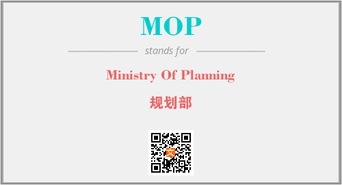 上述内容是“Ministry Of Planning”作为“MOP”的缩写,解释为“规划部”时的信息,以及英文缩略词MOP所代表的英文单词,其对应的中文拼音、详细解释以及在英文中的流行度和相关分类、应用领域及应用示例等。
