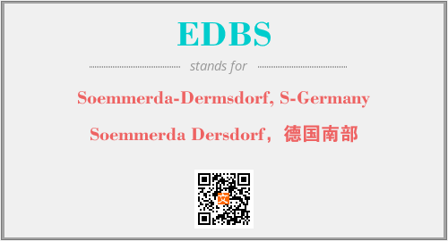 上述内容是“Soemmerda-Dermsdorf, S-Germany”作为“EDBS”的缩写,解释为“Soemmerda Dersdorf,德国南部”时的信息,以及英文缩略词EDBS所代表的英文单词,其对应的中文拼音、详细解释以及在英文中的流行度和相关分类、应用领域及应用示例等。