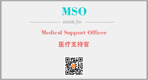 上述内容是“Medical Support Officer”作为“MSO”的缩写,解释为“医疗支持官”时的信息,以及英文缩略词MSO所代表的英文单词,其对应的中文拼音、详细解释以及在英文中的流行度和相关分类、应用领域及应用示例等。