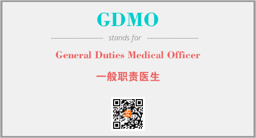 英文缩略词“GDMO”经常作为“General Duties Medical Officer”的英文缩写来使用,中文表示:“一般职责医生”。本文将详细介绍英文缩写词GDMO所代表英文单词,其对应的中文拼音、详细解释以及在英语中的流行度。此外,还有关于缩略词GDMO的分类、应用领域及相关应用示例等。