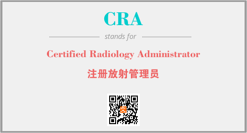 英文缩略词“CRA”经常作为“Certified Radiology Administrator”的英文缩写来使用,中文表示:“注册放射管理员”。本文将详细介绍英文缩写词CRA所代表英文单词,其对应的中文拼音、详细解释以及在英语中的流行度。此外,还有关于缩略词CRA的分类、应用领域及相关应用示例等。