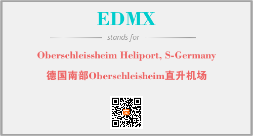 上述内容是“Oberschleissheim Heliport, S-Germany”作为“EDMX”的缩写,解释为“德国南部Oberschleisheim直升机场”时的信息,以及英文缩略词EDMX所代表的英文单词,其对应的中文拼音、详细解释以及在英文中的流行度和相关分类、应用领域及应用示例等。