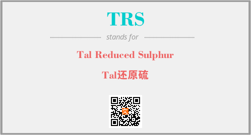 上述内容是“Tal Reduced Sulphur”作为“TRS”的缩写,解释为“Tal还原硫”时的信息,以及英文缩略词TRS所代表的英文单词,其对应的中文拼音、详细解释以及在英文中的流行度和相关分类、应用领域及应用示例等。