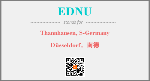 英文缩略词“EDNU”经常作为“Thannhausen, S-Germany”的英文缩写来使用,中文表示:“Düsseldorf,南德”。本文将详细介绍英文缩写词EDNU所代表英文单词,其对应的中文拼音、详细解释以及在英语中的流行度。此外,还有关于缩略词EDNU的分类、应用领域及相关应用示例等。
