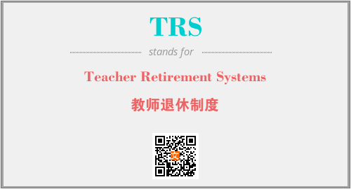 英文缩略词“TRS”经常作为“Teacher Retirement Systems”的英文缩写来使用,中文表示:“教师退休制度”。本文将详细介绍英文缩写词TRS所代表英文单词,其对应的中文拼音、详细解释以及在英语中的流行度。此外,还有关于缩略词TRS的分类、应用领域及相关应用示例等。