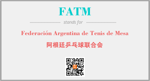 英文缩略词“FATM”经常作为“Federación Argentina de Tenis de Mesa”的英文缩写来使用,中文表示:“阿根廷乒乓球联合会”。本文将详细介绍英文缩写词FATM所代表英文单词,其对应的中文拼音、详细解释以及在英语中的流行度。此外,还有关于缩略词FATM的分类、应用领域及相关应用示例等。