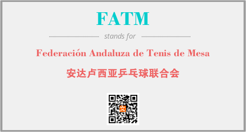 英文缩略词“FATM”经常作为“Federación Andaluza de Tenis de Mesa”的英文缩写来使用,中文表示:“安达卢西亚乒乓球联合会”。本文将详细介绍英文缩写词FATM所代表英文单词,其对应的中文拼音、详细解释以及在英语中的流行度。此外,还有关于缩略词FATM的分类、应用领域及相关应用示例等。