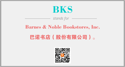 上述内容是“Barnes & Noble Bookstores, Inc.”作为“BKS”的缩写,解释为“巴诺书店(股份有限公司)。”时的信息,以及英文缩略词BKS所代表的英文单词,其对应的中文拼音、详细解释以及在英文中的流行度和相关分类、应用领域及应用示例等。