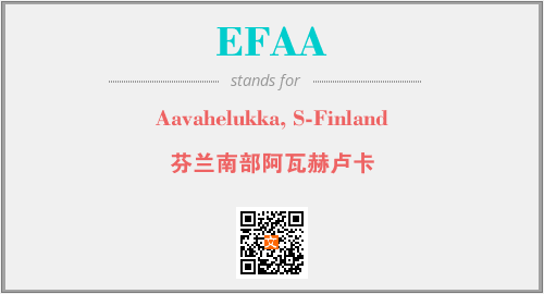 上述内容是“Aavahelukka, S-Finland”作为“EFAA”的缩写,解释为“芬兰南部阿瓦赫卢卡”时的信息,以及英文缩略词EFAA所代表的英文单词,其对应的中文拼音、详细解释以及在英文中的流行度和相关分类、应用领域及应用示例等。