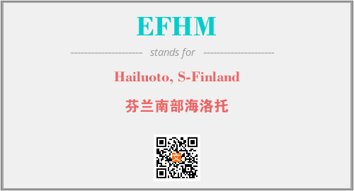 上述内容是“Hailuoto, S-Finland”作为“EFHM”的缩写,解释为“芬兰南部海洛托”时的信息,以及英文缩略词EFHM所代表的英文单词,其对应的中文拼音、详细解释以及在英文中的流行度和相关分类、应用领域及应用示例等。