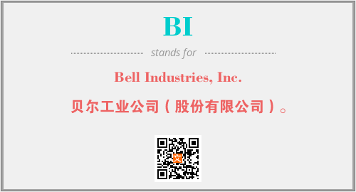 上述内容是“Bell Industries, Inc.”作为“BI”的缩写,解释为“贝尔工业公司(股份有限公司)。”时的信息,以及英文缩略词BI所代表的英文单词,其对应的中文拼音、详细解释以及在英文中的流行度和相关分类、应用领域及应用示例等。