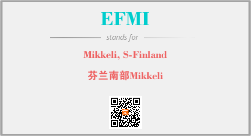 上述内容是“Mikkeli, S-Finland”作为“EFMI”的缩写,解释为“芬兰南部Mikkeli”时的信息,以及英文缩略词EFMI所代表的英文单词,其对应的中文拼音、详细解释以及在英文中的流行度和相关分类、应用领域及应用示例等。