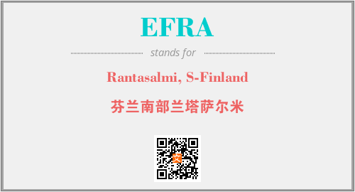 上述内容是“Rantasalmi, S-Finland”作为“EFRA”的缩写,解释为“芬兰南部兰塔萨尔米”时的信息,以及英文缩略词EFRA所代表的英文单词,其对应的中文拼音、详细解释以及在英文中的流行度和相关分类、应用领域及应用示例等。