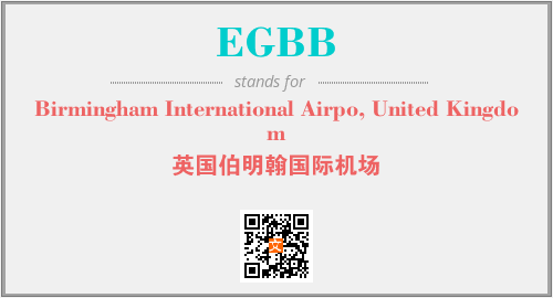 英文缩略词“EGBB”经常作为“Birmingham International Airpo, United Kingdom”的英文缩写来使用,中文表示:“英国伯明翰国际机场”。本文将详细介绍英文缩写词EGBB所代表英文单词,其对应的中文拼音、详细解释以及在英语中的流行度。此外,还有关于缩略词EGBB的分类、应用领域及相关应用示例等。