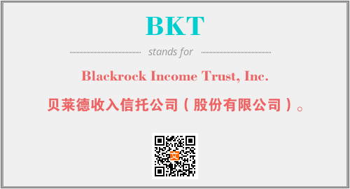 上述内容是“Blackrock Income Trust, Inc.”作为“BKT”的缩写,解释为“贝莱德收入信托公司(股份有限公司)。”时的信息,以及英文缩略词BKT所代表的英文单词,其对应的中文拼音、详细解释以及在英文中的流行度和相关分类、应用领域及应用示例等。