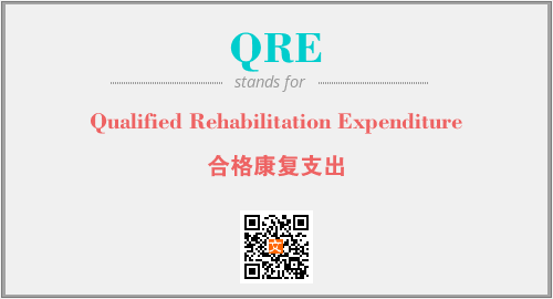上述内容是“Qualified Rehabilitation Expenditure”作为“QRE”的缩写,解释为“合格康复支出”时的信息,以及英文缩略词QRE所代表的英文单词,其对应的中文拼音、详细解释以及在英文中的流行度和相关分类、应用领域及应用示例等。