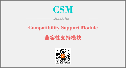 英文缩略词“CSM”经常作为“Compatibility Support Module”的英文缩写来使用,中文表示:“兼容性支持模块”。本文将详细介绍英文缩写词CSM所代表英文单词,其对应的中文拼音、详细解释以及在英语中的流行度。此外,还有关于缩略词CSM的分类、应用领域及相关应用示例等。