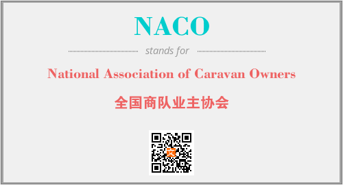 上述内容是“National Association of Caravan Owners”作为“NACO”的缩写,解释为“全国商队业主协会”时的信息,以及英文缩略词NACO所代表的英文单词,其对应的中文拼音、详细解释以及在英文中的流行度和相关分类、应用领域及应用示例等。