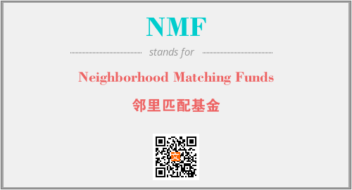 上述内容是“Neighborhood Matching Funds”作为“NMF”的缩写,解释为“邻里匹配基金”时的信息,以及英文缩略词NMF所代表的英文单词,其对应的中文拼音、详细解释以及在英文中的流行度和相关分类、应用领域及应用示例等。