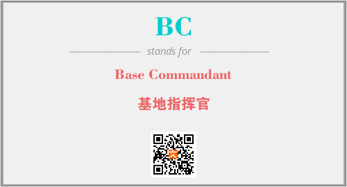 上述内容是“Base Commandant”作为“BC”的缩写,解释为“基地指挥官”时的信息,以及英文缩略词BC所代表的英文单词,其对应的中文拼音、详细解释以及在英文中的流行度和相关分类、应用领域及应用示例等。