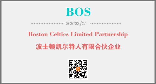 上述内容是“Boston Celtics Limited Partnership”作为“BOS”的缩写,解释为“波士顿凯尔特人有限合伙企业”时的信息,以及英文缩略词BOS所代表的英文单词,其对应的中文拼音、详细解释以及在英文中的流行度和相关分类、应用领域及应用示例等。