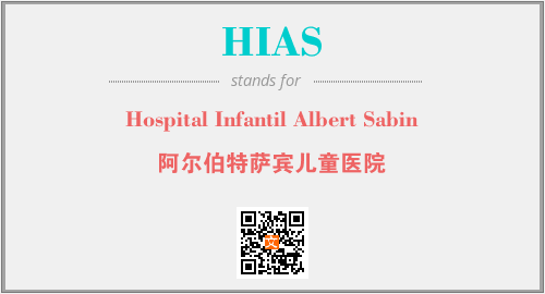 上述内容是“Hospital Infantil Albert Sabin”作为“HIAS”的缩写,解释为“阿尔伯特萨宾儿童医院”时的信息,以及英文缩略词HIAS所代表的英文单词,其对应的中文拼音、详细解释以及在英文中的流行度和相关分类、应用领域及应用示例等。