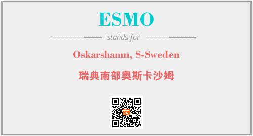 上述内容是“Oskarshamn, S-Sweden”作为“ESMO”的缩写,解释为“瑞典南部奥斯卡沙姆”时的信息,以及英文缩略词ESMO所代表的英文单词,其对应的中文拼音、详细解释以及在英文中的流行度和相关分类、应用领域及应用示例等。