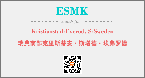 上述内容是“Kristianstad-Everod, S-Sweden”作为“ESMK”的缩写,解释为“瑞典南部克里斯蒂安·斯塔德·埃弗罗德”时的信息,以及英文缩略词ESMK所代表的英文单词,其对应的中文拼音、详细解释以及在英文中的流行度和相关分类、应用领域及应用示例等。