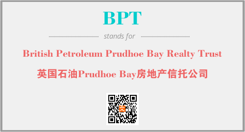 上述内容是“British Petroleum Prudhoe Bay Realty Trust”作为“BPT”的缩写,解释为“英国石油Prudhoe Bay房地产信托公司”时的信息,以及英文缩略词BPT所代表的英文单词,其对应的中文拼音、详细解释以及在英文中的流行度和相关分类、应用领域及应用示例等。
