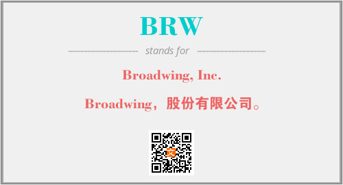 上述内容是“Broadwing, Inc.”作为“BRW”的缩写,解释为“Broadwing,股份有限公司。”时的信息,以及英文缩略词BRW所代表的英文单词,其对应的中文拼音、详细解释以及在英文中的流行度和相关分类、应用领域及应用示例等。