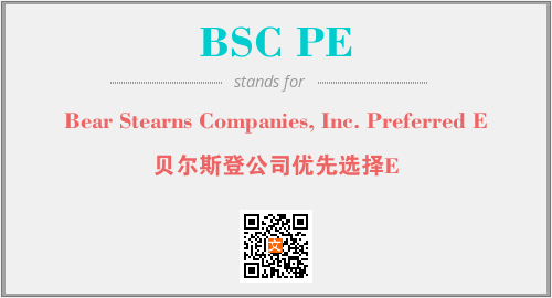 上述内容是“Bear Stearns Companies, Inc. Preferred E”作为“BSC PE”的缩写,解释为“贝尔斯登公司优先选择E”时的信息,以及英文缩略词BSC PE所代表的英文单词,其对应的中文拼音、详细解释以及在英文中的流行度和相关分类、应用领域及应用示例等。