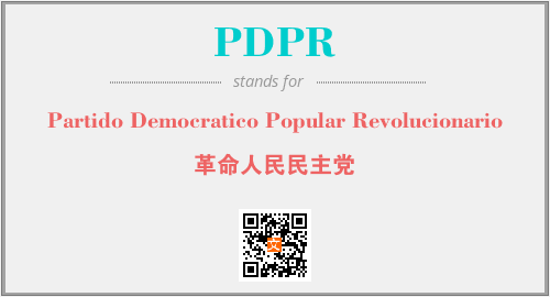 上述内容是“Partido Democratico Popular Revolucionario”作为“PDPR”的缩写,解释为“革命人民民主党”时的信息,以及英文缩略词PDPR所代表的英文单词,其对应的中文拼音、详细解释以及在英文中的流行度和相关分类、应用领域及应用示例等。