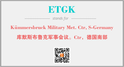 上述内容是“Kümmersbruck Military Met. Ctr, S-Germany”作为“ETGK”的缩写,解释为“库默斯布鲁克军事会议。Ctr,德国南部”时的信息,以及英文缩略词ETGK所代表的英文单词,其对应的中文拼音、详细解释以及在英文中的流行度和相关分类、应用领域及应用示例等。