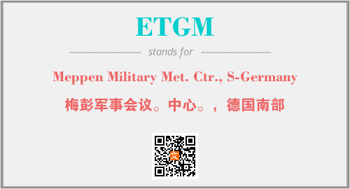 英文缩略词“ETGM”经常作为“Meppen Military Met. Ctr., S-Germany”的英文缩写来使用,中文表示:“梅彭军事会议。中心。,德国南部”。本文将详细介绍英文缩写词ETGM所代表英文单词,其对应的中文拼音、详细解释以及在英语中的流行度。此外,还有关于缩略词ETGM的分类、应用领域及相关应用示例等。