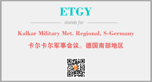上述内容是“Kalkar Military Met. Regional, S-Germany”作为“ETGY”的缩写,解释为“卡尔卡尔军事会议。德国南部地区”时的信息,以及英文缩略词ETGY所代表的英文单词,其对应的中文拼音、详细解释以及在英文中的流行度和相关分类、应用领域及应用示例等。
