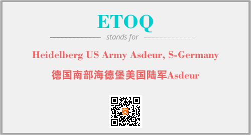 以上为Heidelberg US Army Asdeur, S-Germany英文缩略词ETOQ的中文解释,以及该英文缩写在英语的流行度、分类和应用领域方面的信息。