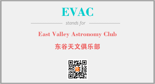 上述内容是“East Valley Astronomy Club”作为“EVAC”的缩写,解释为“东谷天文俱乐部”时的信息,以及英文缩略词EVAC所代表的英文单词,其对应的中文拼音、详细解释以及在英文中的流行度和相关分类、应用领域及应用示例等。