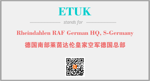 上述内容是“Rheindahlen RAF German HQ, S-Germany”作为“ETUK”的缩写,解释为“德国南部莱茵达伦皇家空军德国总部”时的信息,以及英文缩略词ETUK所代表的英文单词,其对应的中文拼音、详细解释以及在英文中的流行度和相关分类、应用领域及应用示例等。