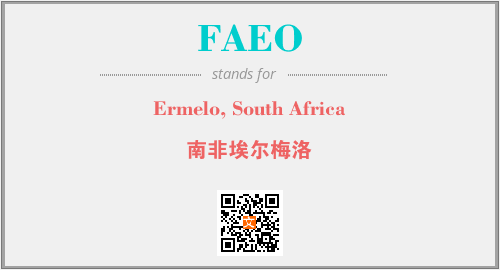上述内容是“Ermelo, South Africa”作为“FAEO”的缩写,解释为“南非埃尔梅洛”时的信息,以及英文缩略词FAEO所代表的英文单词,其对应的中文拼音、详细解释以及在英文中的流行度和相关分类、应用领域及应用示例等。