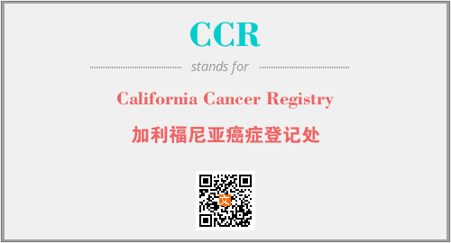 上述内容是“California Cancer Registry”作为“CCR”的缩写,解释为“加利福尼亚癌症登记处”时的信息,以及英文缩略词CCR所代表的英文单词,其对应的中文拼音、详细解释以及在英文中的流行度和相关分类、应用领域及应用示例等。