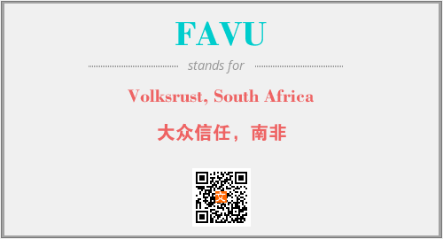上述内容是“Volksrust, South Africa”作为“FAVU”的缩写,解释为“大众信任,南非”时的信息,以及英文缩略词FAVU所代表的英文单词,其对应的中文拼音、详细解释以及在英文中的流行度和相关分类、应用领域及应用示例等。