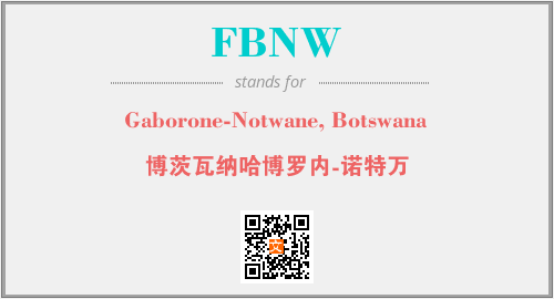 英文缩略词“FBNW”经常作为“Gaborone-Notwane, Botswana”的英文缩写来使用,中文表示:“博茨瓦纳哈博罗内-诺特万”。本文将详细介绍英文缩写词FBNW所代表英文单词,其对应的中文拼音、详细解释以及在英语中的流行度。此外,还有关于缩略词FBNW的分类、应用领域及相关应用示例等。