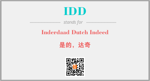 上述内容是“Inderdaad Dutch Indeed”作为“IDD”的缩写,解释为“是的,达奇”时的信息,以及英文缩略词IDD所代表的英文单词,其对应的中文拼音、详细解释以及在英文中的流行度和相关分类、应用领域及应用示例等。