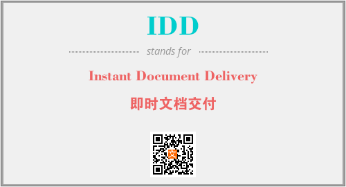 以上为Instant Document Delivery英文缩略词IDD的中文解释,以及该英文缩写在英语的流行度、分类和应用领域方面的信息。