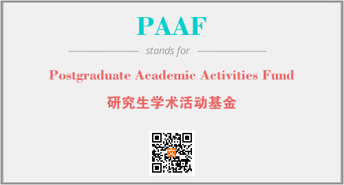 上述内容是“Postgraduate Academic Activities Fund”作为“PAAF”的缩写,解释为“研究生学术活动基金”时的信息,以及英文缩略词PAAF所代表的英文单词,其对应的中文拼音、详细解释以及在英文中的流行度和相关分类、应用领域及应用示例等。